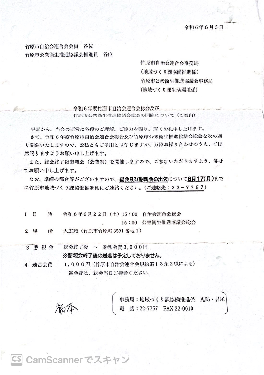 令和6年度竹原市自治会連合総会及び竹原市公衆衛生推進協議会総会が大広苑で開催されました