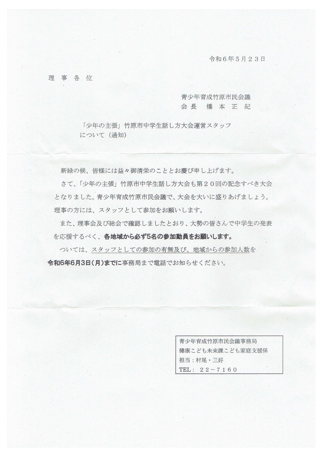 少年の主張が竹原市民館で開催されました出席者